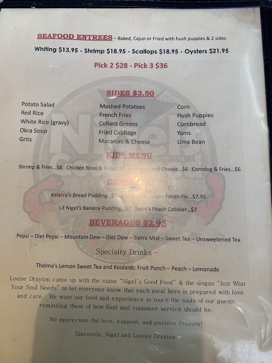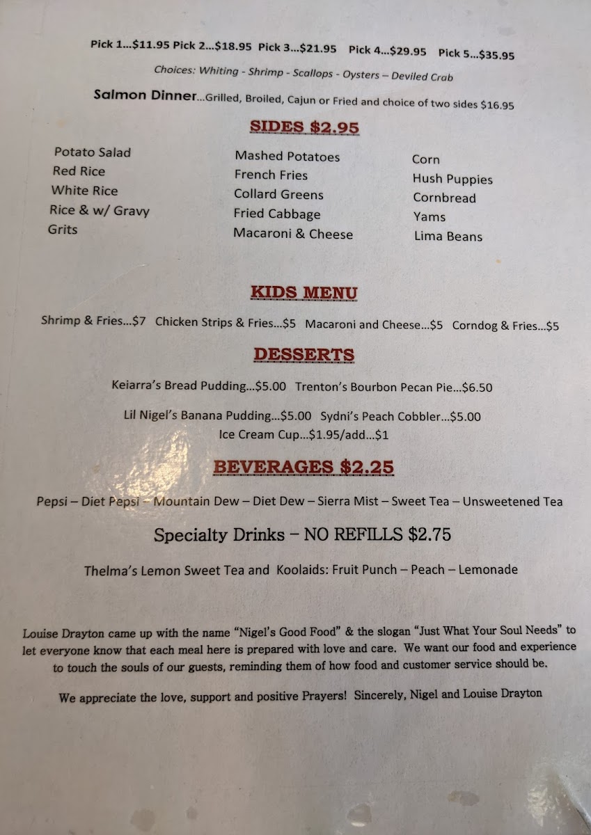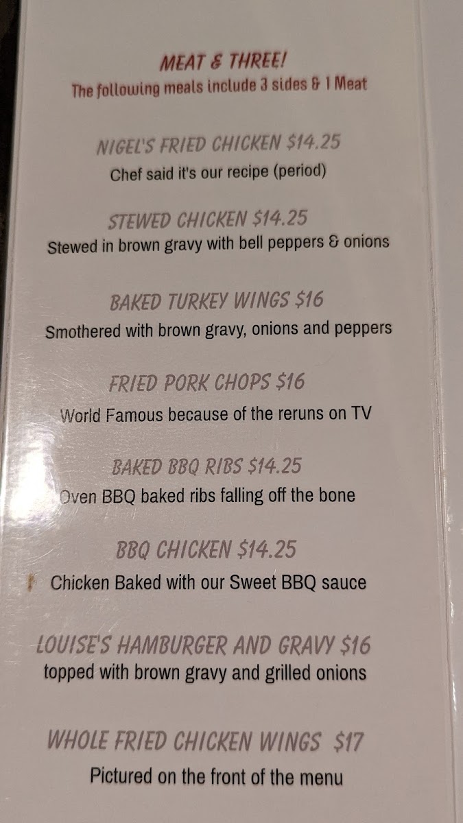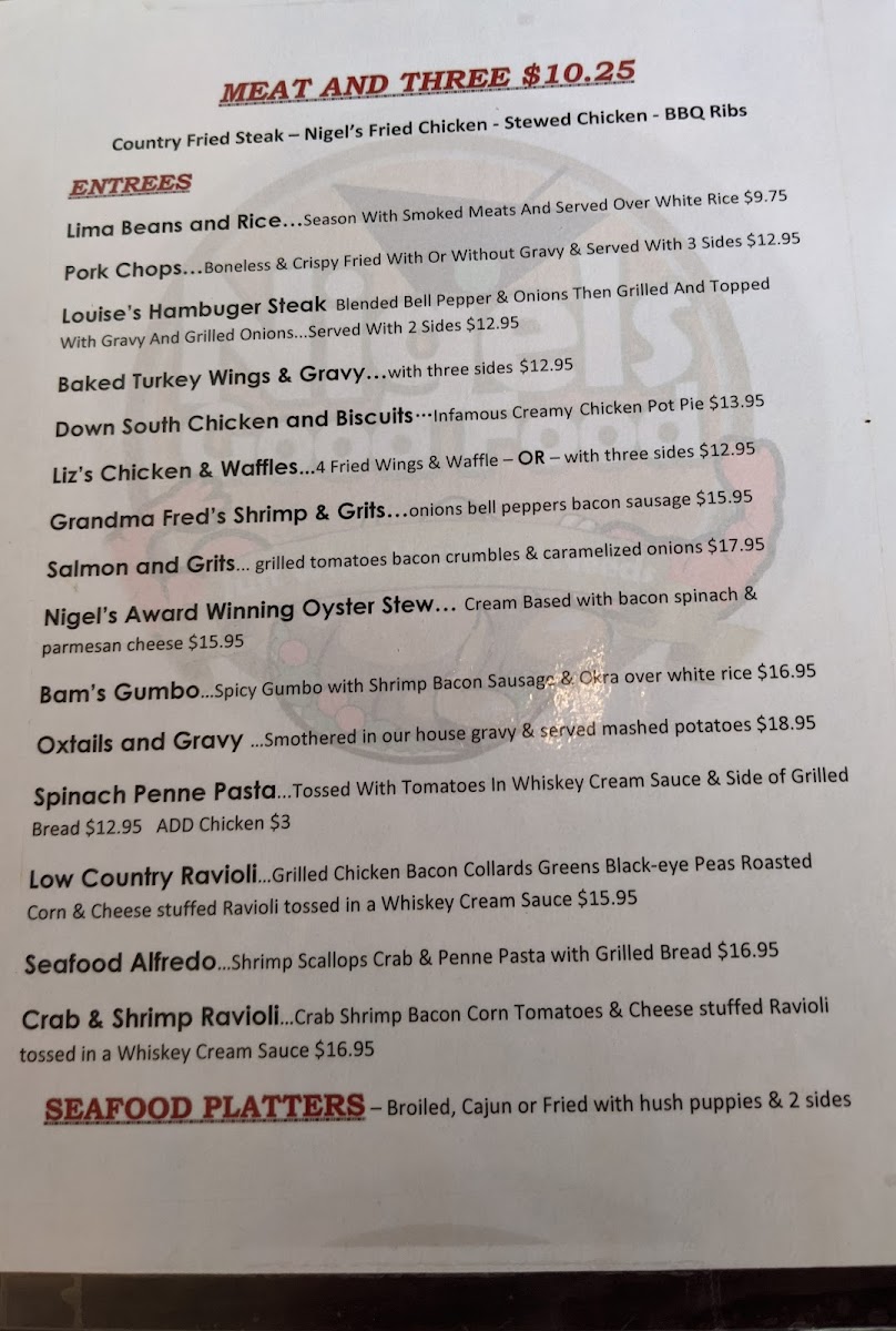Closed offers a straightforward menu rooted in classic Southern soul food and bar & grill favorites. The selection is warm and familiar, perfect for those looking for hearty, unpretentious meals any time of day. Whether you stop by for a leisurely lunch or a casual dinner, you’ll find comforting dishes that pair well with the relaxed, welcoming atmosphere.