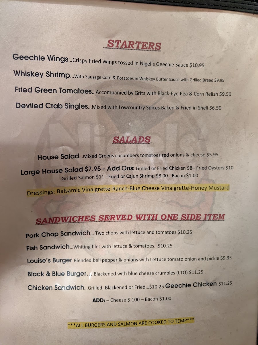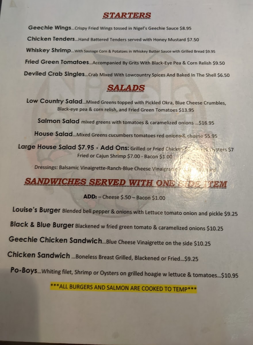 Closed - North Charleston Menu
